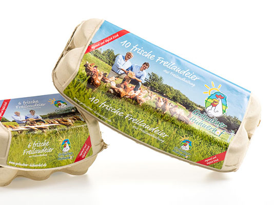 Entwurf von Eierverpackungen, Flaschenetiketten, Autobeklebung und Webseite